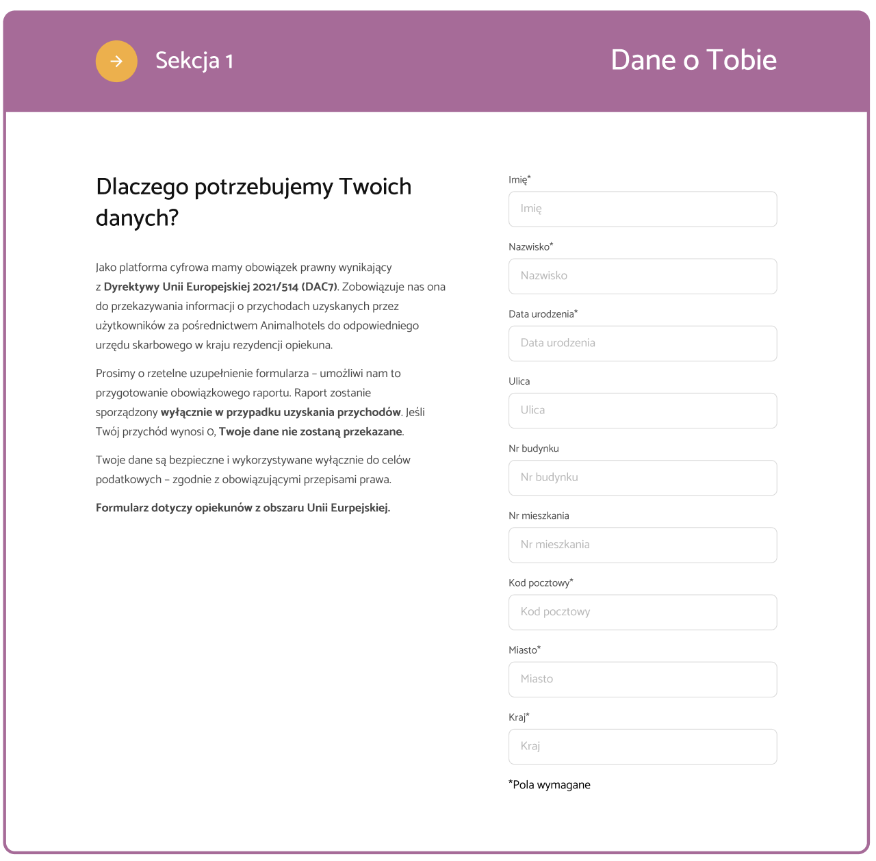 Uzupełnienie formularza DAC7 jest konieczne, aby dalej korzystać z Animalhotels jako petsitter. Dzięki temu: