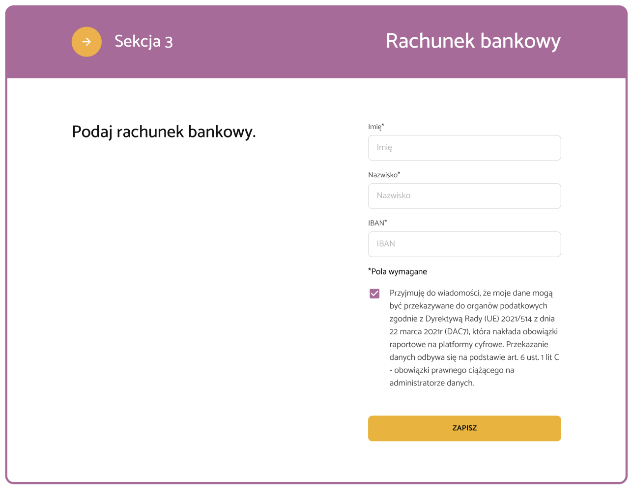 - zgodnie z dyrektywą DAC7,