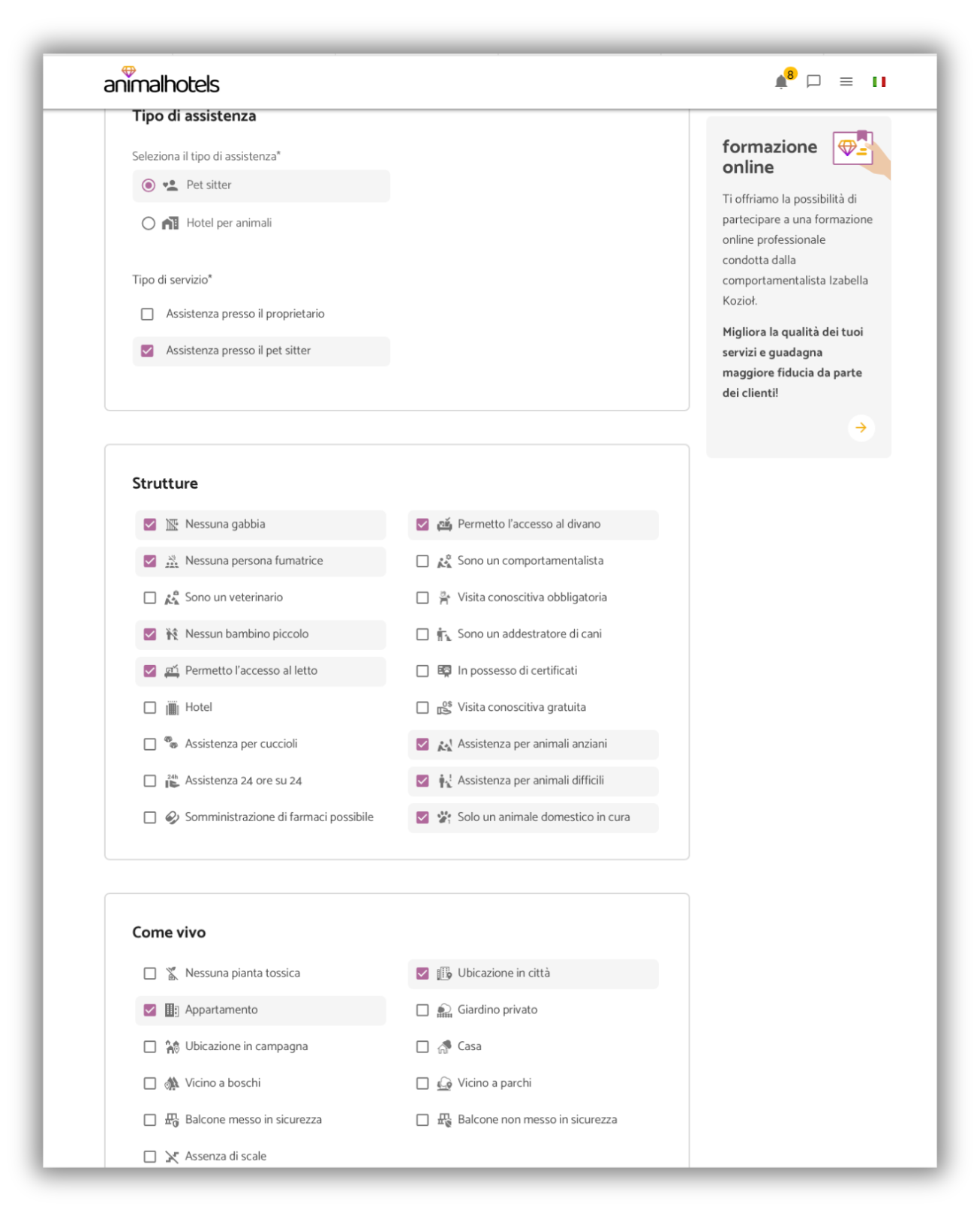 Ricorda di specificare il tipo di cura che offri! Un hotel è un’attività registrata, mentre un pet sitter è un individuo.